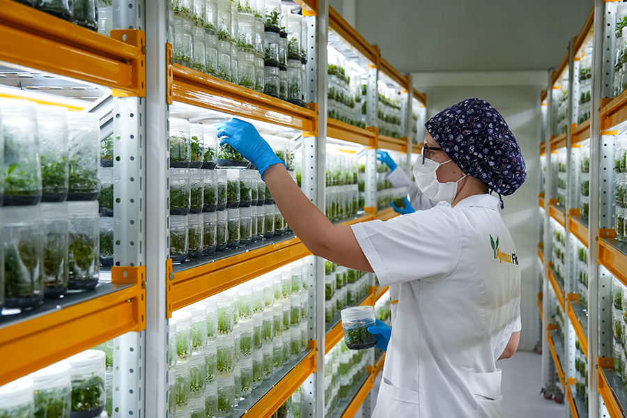 Aymuz Fide, modern doku kültürü laboratuvarları ile bitki üretiminde en ileri teknikleri kullanarak hastalıklardan ari, sağlıklı ve genetik olarak güçlü bitkiler sunmaktadır. Laboratuvarımızda gerçekleştirilen üretim süreçleri, steril ortamda yürütülen titiz çalışmalarla yüksek kaliteli bitkiler elde edilmesini sağlar. Sürekli iyileştirme anlayışı ile bitki doku kültürü yöntemlerini optimize ediyor, verimli ve dayanıklı bitkiler üretmek için AR-GE faaliyetlerimizi sürdürüyoruz.